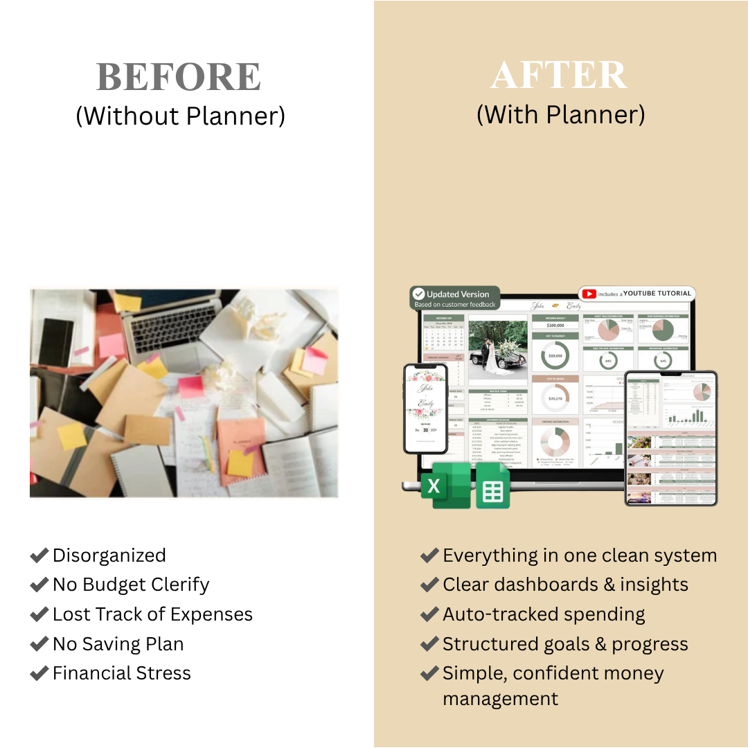 "I didn't realize how much this would help until I started using it. Everything is laid out clearly, budget, guest list, checklist, gifts, all in one spot. It saved us hours of stress and back and forth. If you're planning a wedding, this is the one thing I'd recommend downloading first."
