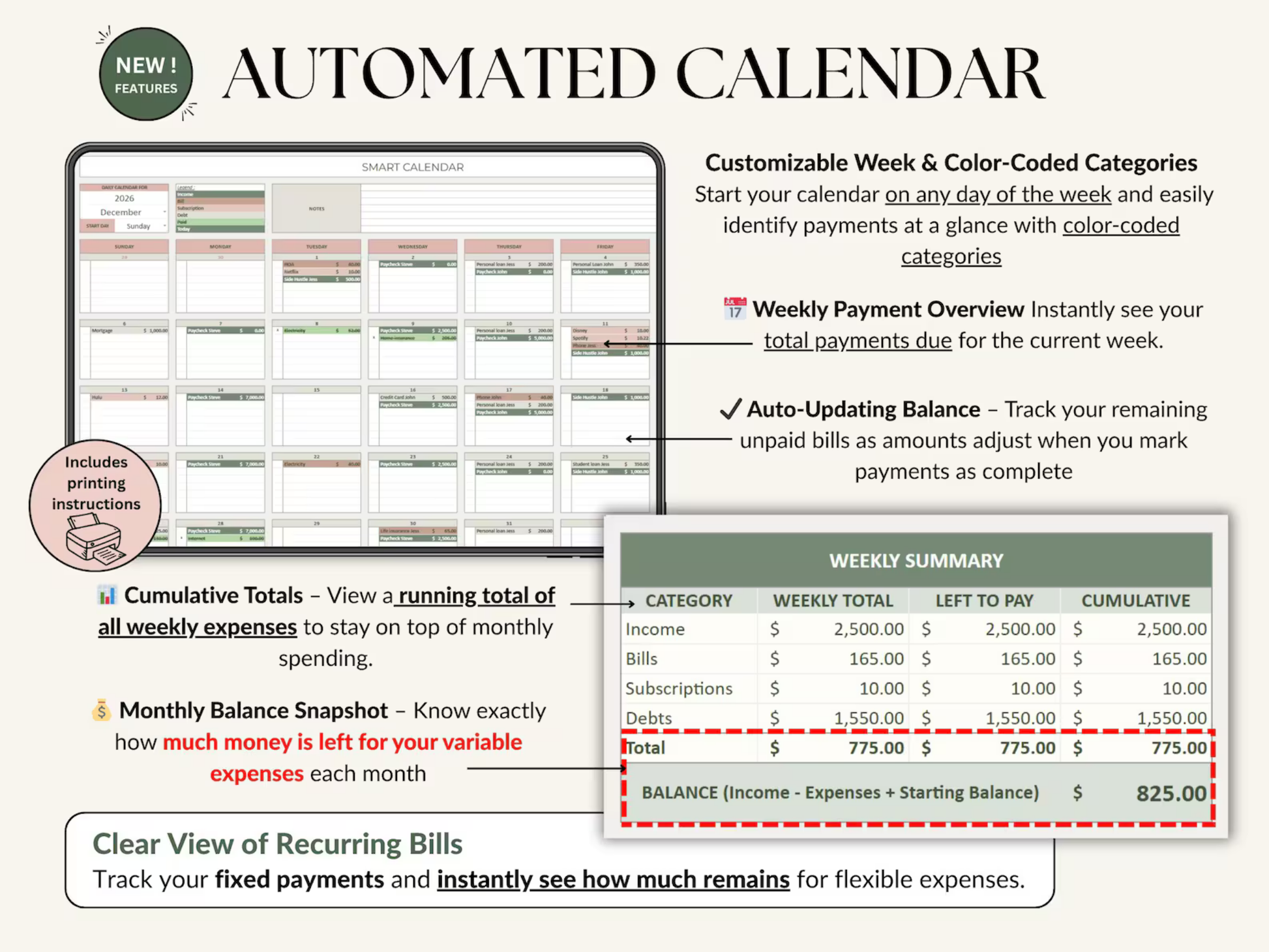 Absolutely! Everything is pre-formatted and easy to follow, even if you’ve never used a planner or spreadsheet before.